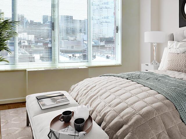 The Lucerne is a modern high-rise doorman elevator building. The building's amenities include a laundry, a gym, a pool, a garage, and a children's play room. The apartments have high ceilings.